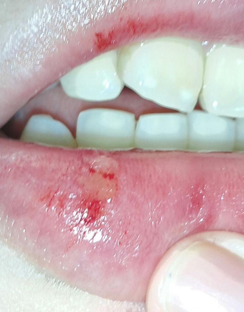 입술에 피가 난 상태고 얼굴 씻고 릿밤 바르고 나니까 피가 나더라구요.