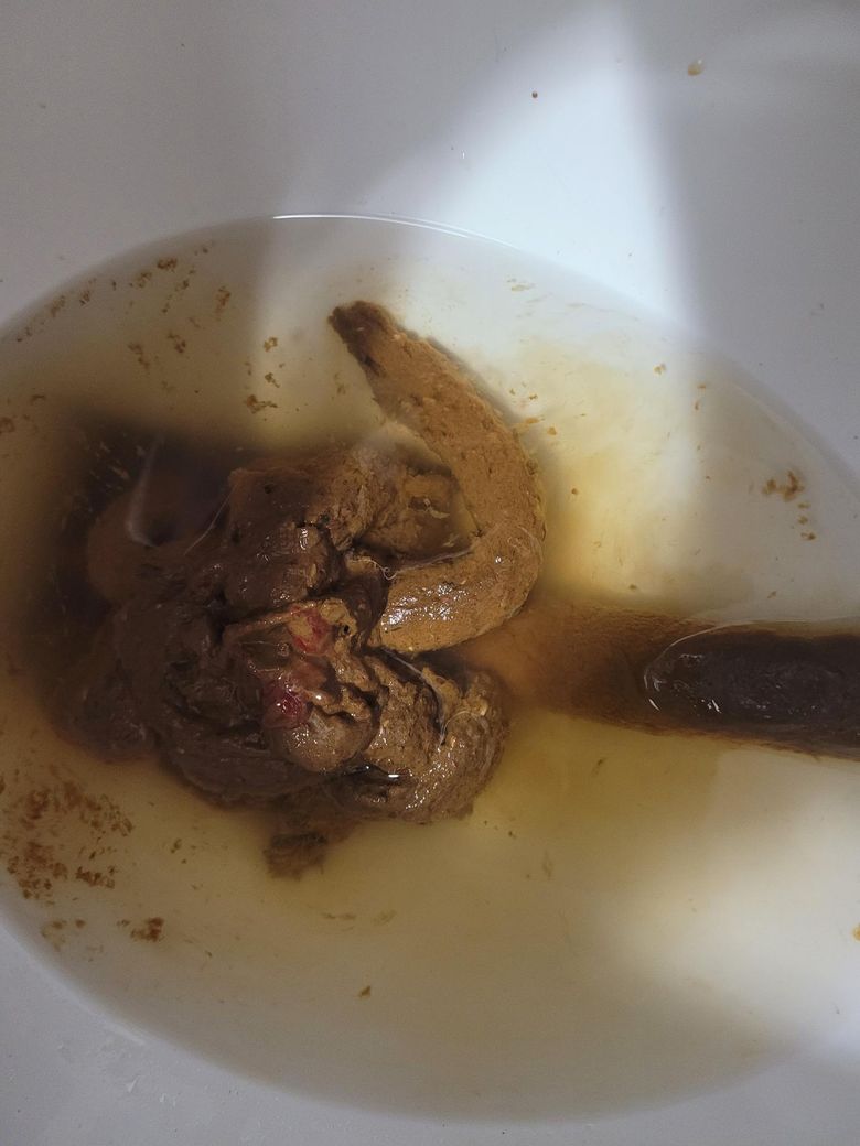 좀 딱딱한 대변을 보긴했는데 대변을 봤는데 피가 뭍어나오네요. 그리고 변에도 점처럼 빤간색이 찍혀있네요. 피가 나온 이유가 뭘까요?