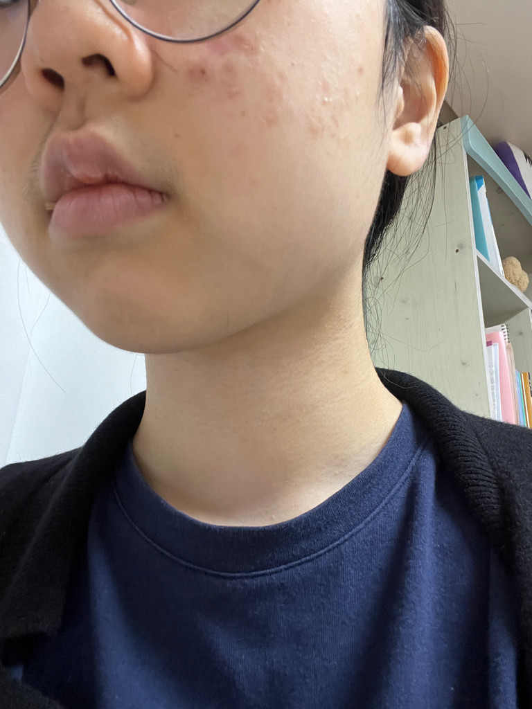 여드름에 대한 치료를 받아야 될 것 같네요. 특히 염증성 여드름이 많이 보여서 가급적 얼굴을 만지지 않고 항생제 치료를 해야 될 것 같습니다.