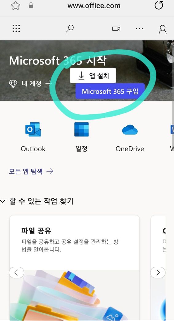 그리고 Microsoft365 홈페이지 들어가서, 가입했던 계정으로 로그인하면 '앱 다운로드' 버튼이 있긴하더라구요. 그 버튼 누르면 무료로 사용할 수 있나요?