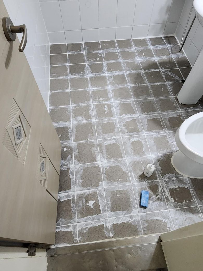 줄눈 시공 후 번진 자국은 보통 곡선이나 부드러운 솔로 조심스럽게 문질러서 제거하는 게 좋아요.