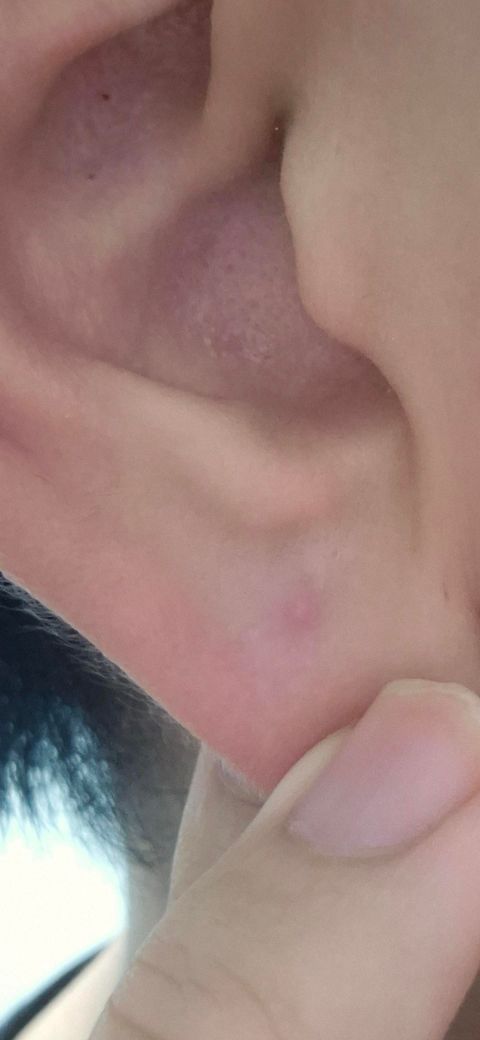 귓볼에 저렇게 무언가가있는데 가만히 있을때는 안아픈데 누르면 아프네요 무엇인지 궁금합니다ㅠ 그냥 뾰루지 같은걸까요?ㅠㅠㅠ