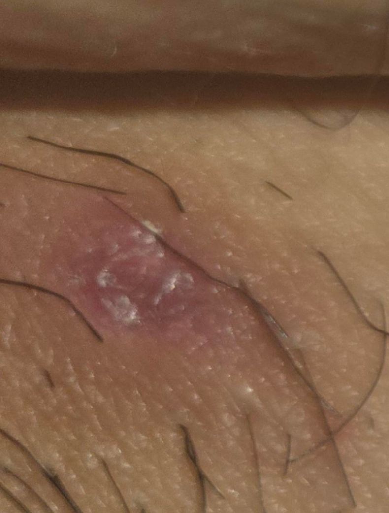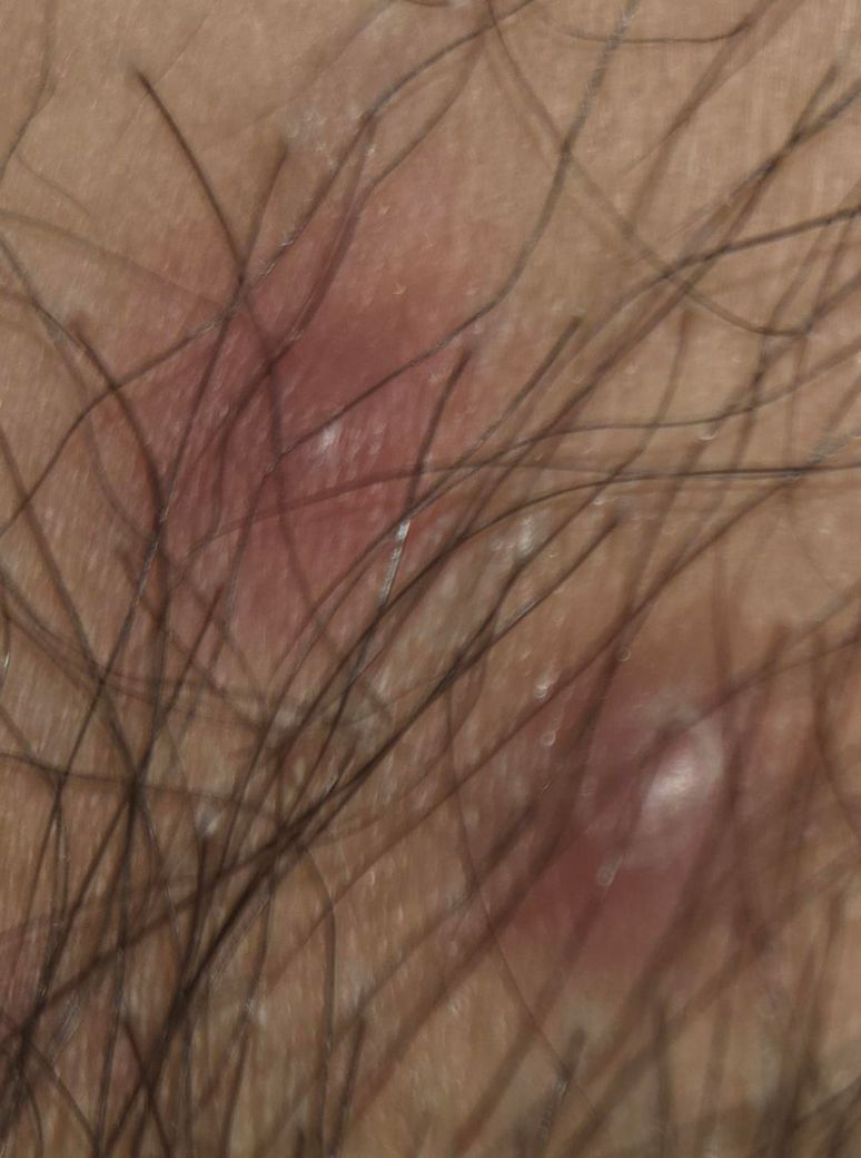 사진과 설명을 종합하면 성병보다는 모낭염 또는 마찰·땀으로 인한 세균성 피부염 가능성이 가장 높아 보입니다. 음모가 있는 부위에 가렵고 붉은 구진이 생기고, 누르면 하얀 피지나 고름처럼 나오는 양상은 면도, 꽉 끼는 속옷·바지, 땀과 습기로 모공이 막히며 세균이 증식할 때 흔히 나타납니다. 최근 성관계가 없다는 점에서도 성병 가능성은 낮아 보입니다.