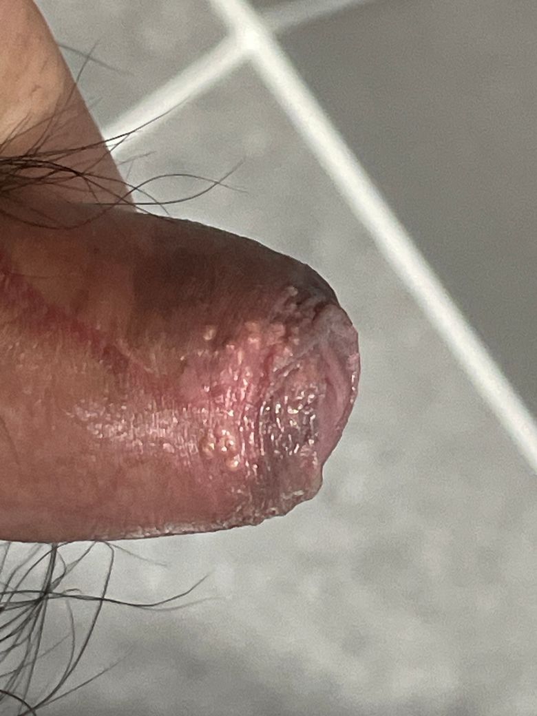 예전부터 성기 끝부분에 여드름처럼 뭐가 나 있었는데 간지럽지도 않고 터지지도 않고 아무 증상이 없길래 놔뒀습니다. 특히 간지러움도 느끼지 못했으며 신경 쓰일 증상이 하나도 없습니다. 포경수술은 아직 하지 않았고 할 예정이라 걱정이 되어서 무슨 병명인지 여쭈어 봅니다. 발생 위치는 껍질 아랫부분이며, 성관계 여부는 없습니다. 혹시 헤르페스나 다른 성병일 가능성은 없겠죠..?