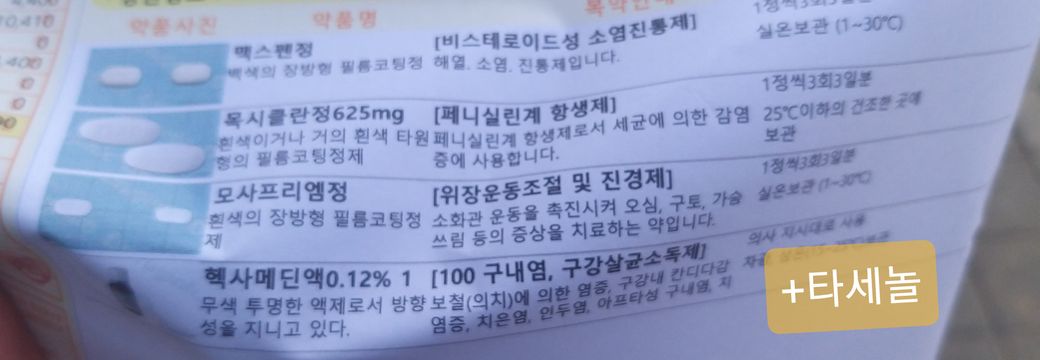 두번째 약에는 가글과 목시클란정과 같은 항생제만 사용하시길 바랍니다.