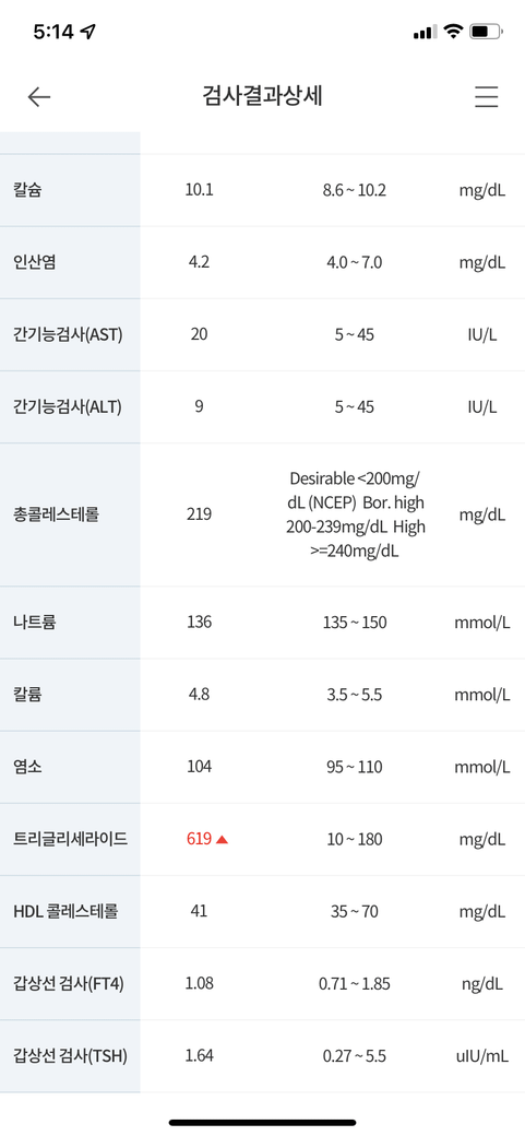 현재 중성지방이 많이 높은 상태이므로 소아 내분비에서 진료를 받아보시는 것이 좋겠습니다.