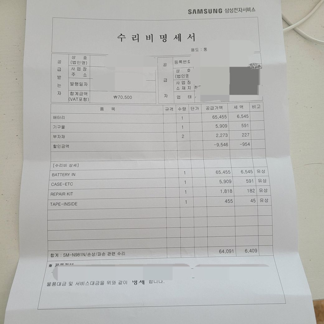 이번에 배터리 성능이 저하되어 배터리 교체하면서 카메라 후면 파손도 같이 교체했습니다. 노트20 배터리는 63,500원이라고 들었고 영수증에도 그렇게 적혀있습니다. Kt보상센터에서 처음엔 50500원을 받게 될것이다라고 안내전화가 와서 그렇게 알고있었는데, 오늘 갑자기 전화와서 카메라 후면은 최소금액이 안되어서 보상을 못 받는다하였고, 배터리는 공임비제외하고 49500원에서 2만얼마를 보상 받게 된다고 하더라구요? 원래 공임비를 제외하고 지급하나요? 네이버 후기 찾아보고 교체했는데 다른분들은 배터리 6만원에 보상금은 4만얼마 받았던데 이게 맞나요?