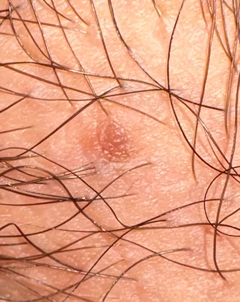 감별해야 할 흔한 경우로는 모낭염 또는 모낭 주변에 생긴 작은 염증성 결절, 피지낭종 초기, 피부 연성섬유종(살쪼기) 등이 있습니다. 특히 음모가 많은 부위에서는 털구멍 관련 병변이 매우 흔하고, 만졌을 때 말랑하거나 살덩이처럼 느껴질 수 있습니다. 성관계가 5개월 전 1회였고 이후 변화가 거의 없다면 HPV 감염 가능성은 상대적으로 낮게 평가됩니다.