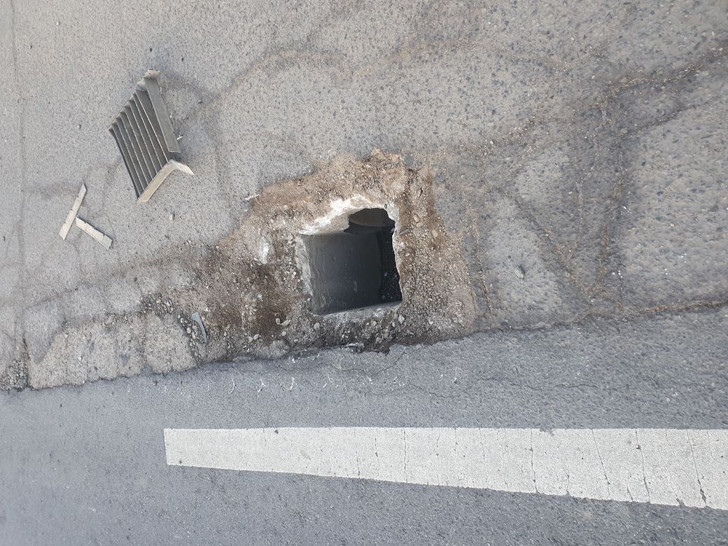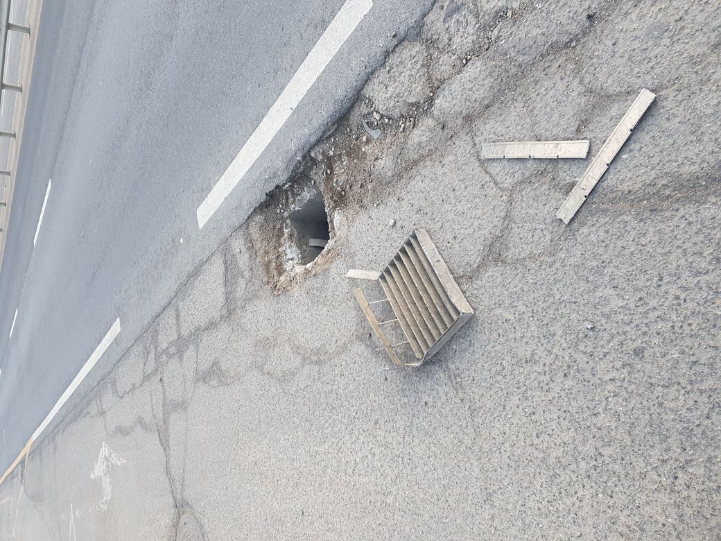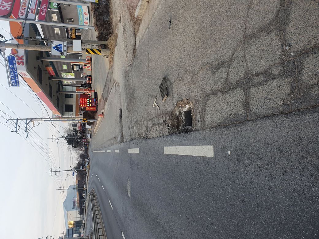 및에 사진과같이 주유소 진입하다 도로에 맨홀 파손으로 인해 뒷범퍼 조수석 뒤휀다 하부 휠 타이어 앞뒤 다 아작이 났는데 도로 공사 어디에 신고및 보상절차를 어떻게 해야하나요