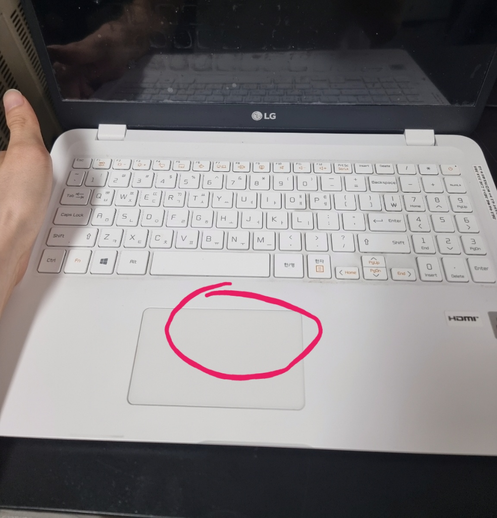 노트북 터치패드에 생수를 조금 흘렸는데, 1초만에 휴지로 닦아주었어요