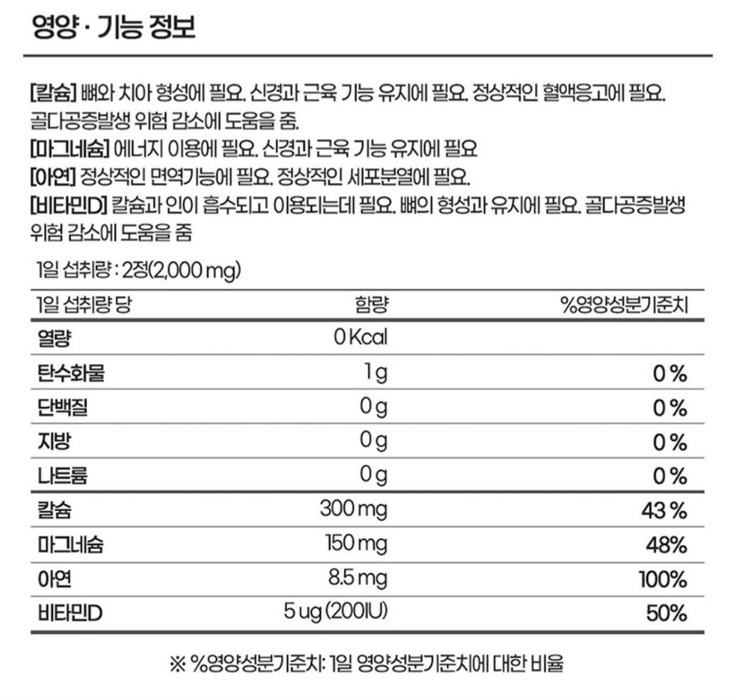 칼슘/마그네슘 제품은 저녁식후에 따로 복용을 권장드립니다.