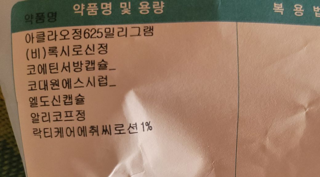 아클라오정, 록시로신정 항생제가 2가지라서 유산균을 따로 챙겨드시면 좋을것 같아요.