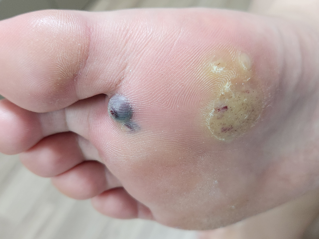 발바닥 사마귀 냉동치료 후 물집 터짐