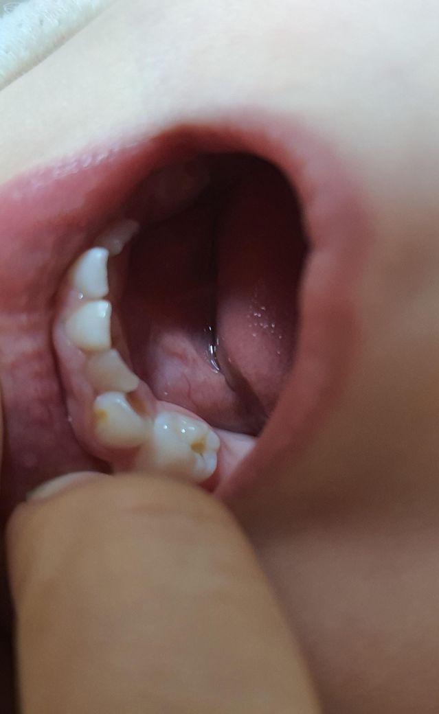 18개월인 아기인데요. 치아 부분이 노랗게 변색 되어 있어요. 두 군데가 그래요. 충치는 아닌 거 같은데 이유 좀 알려주세요!!!