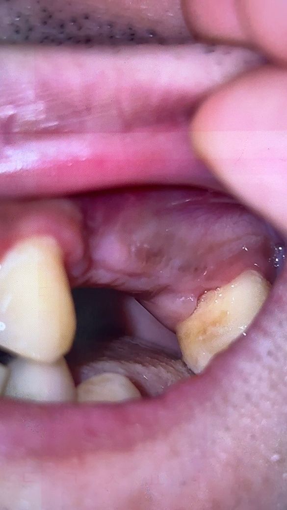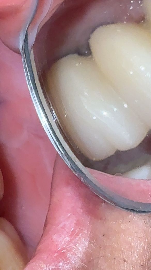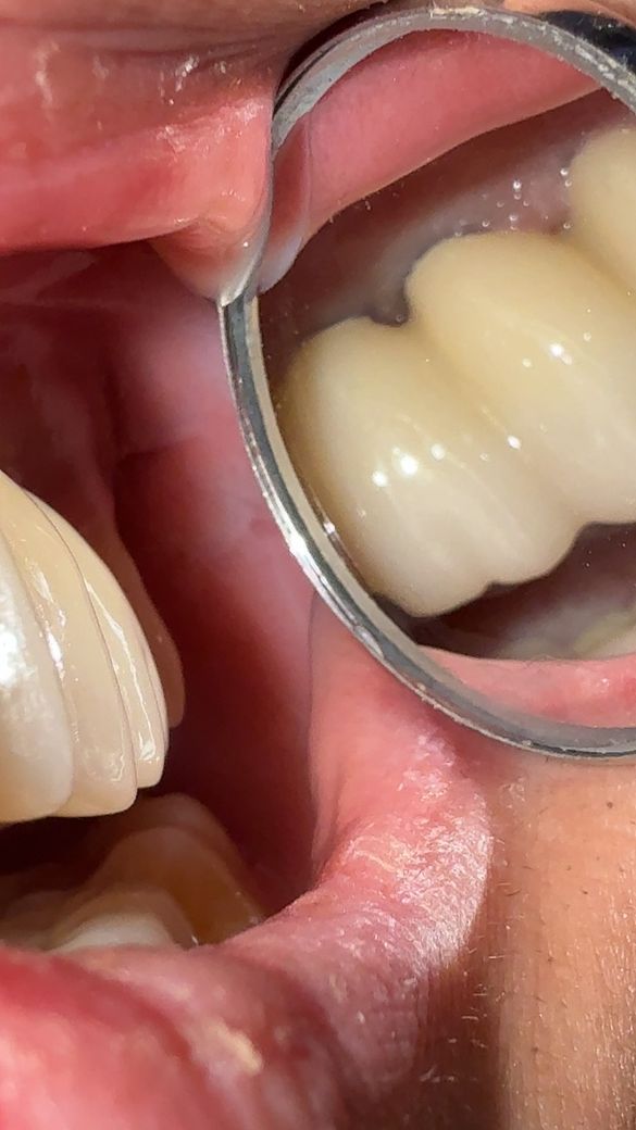 사진은 윗쪽 브릿지형 보철물 사이 협측의 모습인데