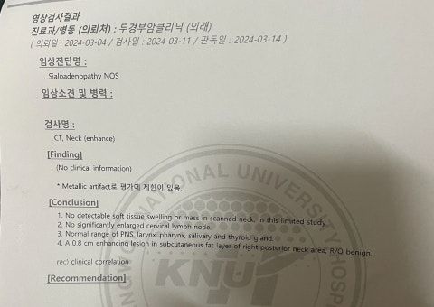 대학병원에서 오래된 ct 장비로 검사를 받았는데 침샘 종양이나 병변을 놓칠 수가 있나요?