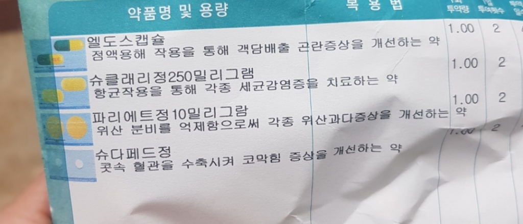 질문2) 이게 저번알레르기직전에먹은감기약.