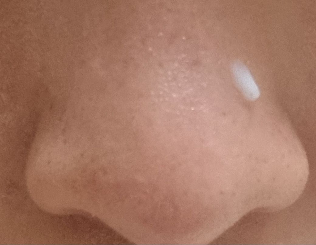 (아래 사진에 보이는 하얀색은 코에 작은 여드름이 나있길래 애크논크림을 바른 것입니다)