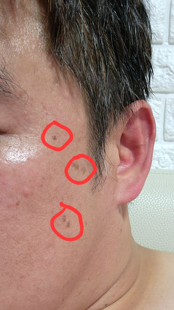 해당 병변은 흔히들 이야기 하는 기미에 해당하는 것으로 보이며 노화의 결과입니다.
