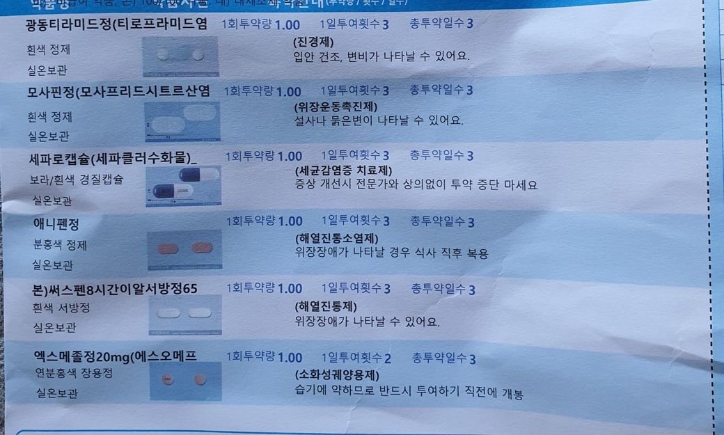 20살 성인여자 장염 처방전 입니다..설사는 3일째이고 약은 2일 먹었는데..호전이 안되서요...설사를 계속해요..