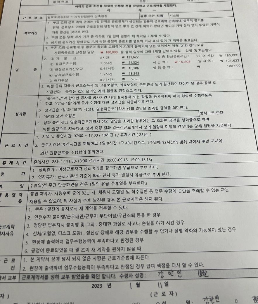 현재 하청업체 에서 일하고 있고 공수제로 월급받으며 숙소생활 중입니다. 이 계약서는 하청업체에서 다니는 현장 중 하나이고 하청업체 에서는 근로계약서를 따로 작성안했고 평택에 있는 현장에서만 근로계약서(포괄임금제)를 작성했는데 일요일이나 크리스마스날 같은 공휴일이나 빨간날에 일해도 돈 더 못받나요? ㅠㅠ