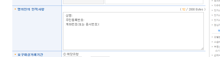 피고의 금융거래정보를 원하면 피고의 인적사항을, 제3자의 금융거래정보를 원한다면 제3자의 인적사항을 말합니다.