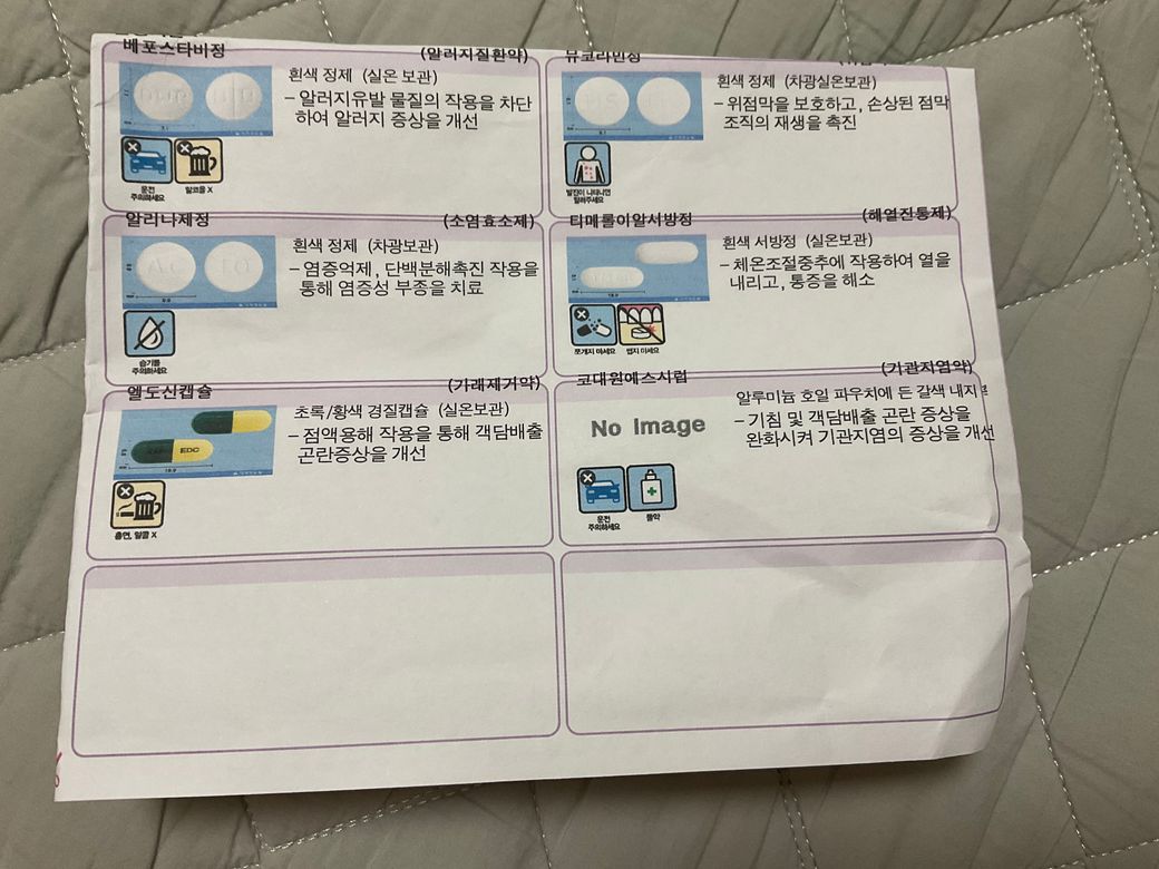 사진이 확대 되지 않아서 해열진통제가 정확히 어떤약인지 보이지 않지만, 아세트아미노펜 성분이 아니라면 타이레놀을 추가적으로 3-4시간 간격으로 복용하셔도 상관없습니다.