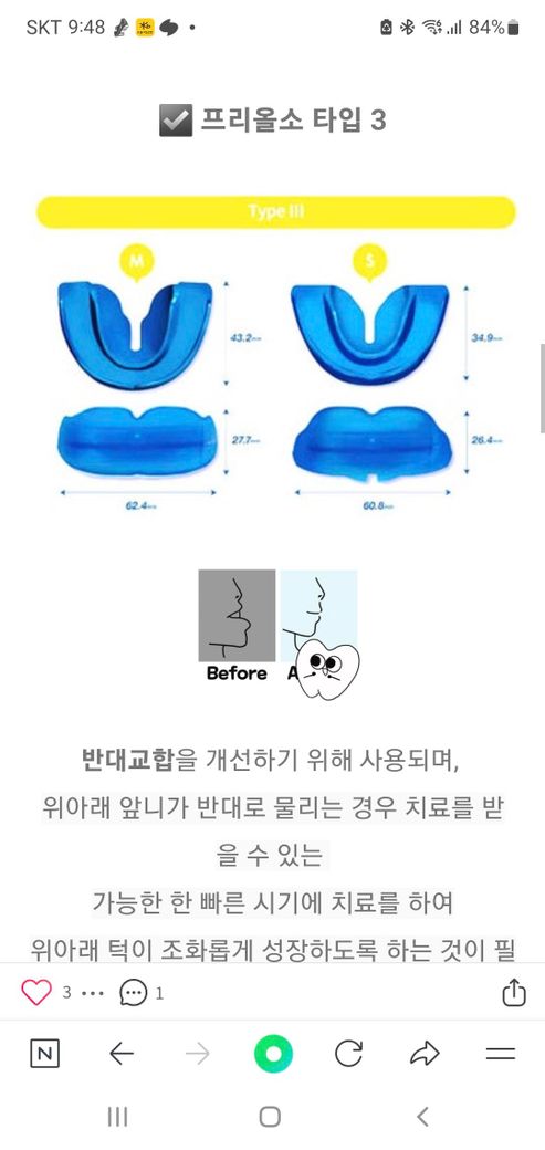 교정기 타입이 3가지인데 우리 아이가 착용하는건 윗니가 너무 나온 아이들이 착용하는 장치인거같아요