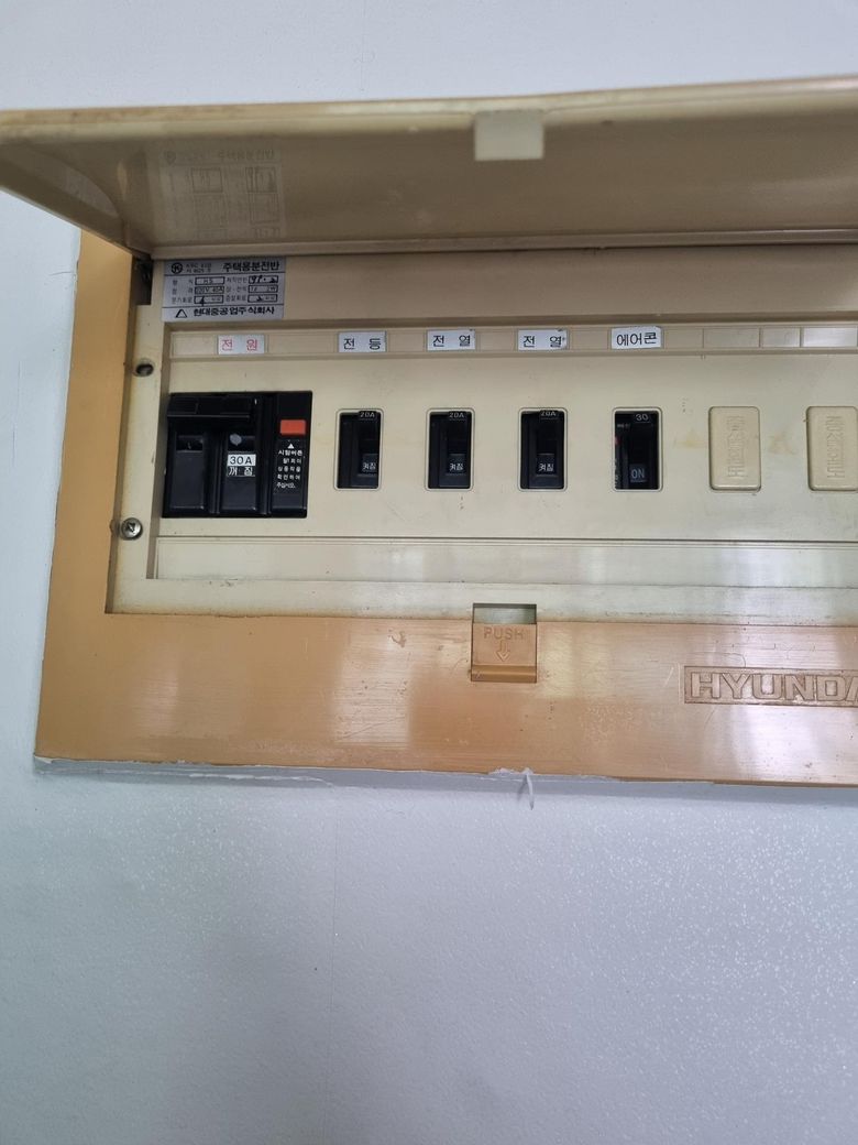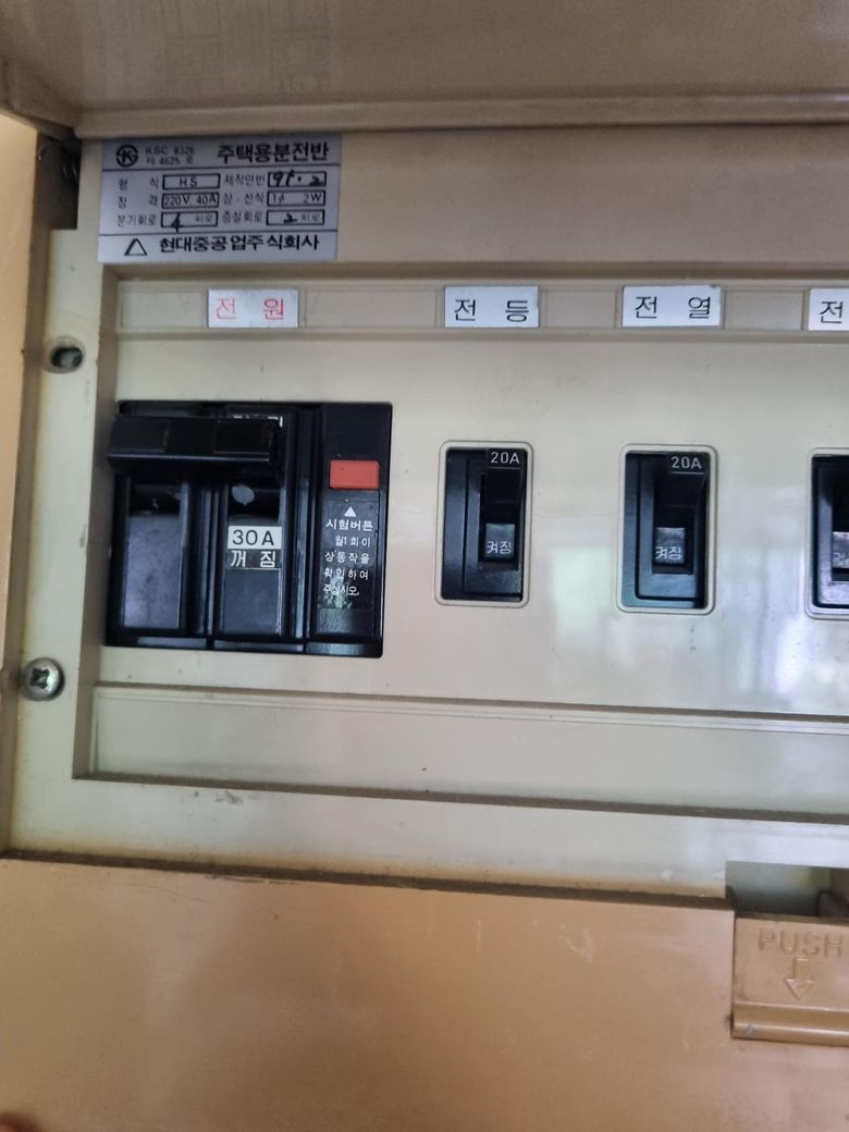 그리고 반만 내려간게 차단기 떨어진 것입니다. 일단 업자를 불러서 점검 받는게 좋습니다.