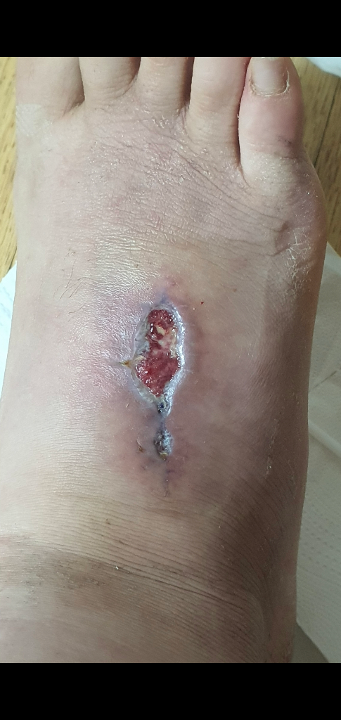상처에 대해 걱정스러우시지요. 시간이 경과하며 조금이나마 호전된 양상을 보이고 있고 가피가 형성되어 더 이상 진물이 심하게 나오지는 않을 것으로 보이니 상처 청결히 관리해보시기 바랍니다. 회복이 너무 더딜 경우에는 피부 이식까지도 고려할 수 있겠으나 아직은 더 지켜볼만 하겠습니다.