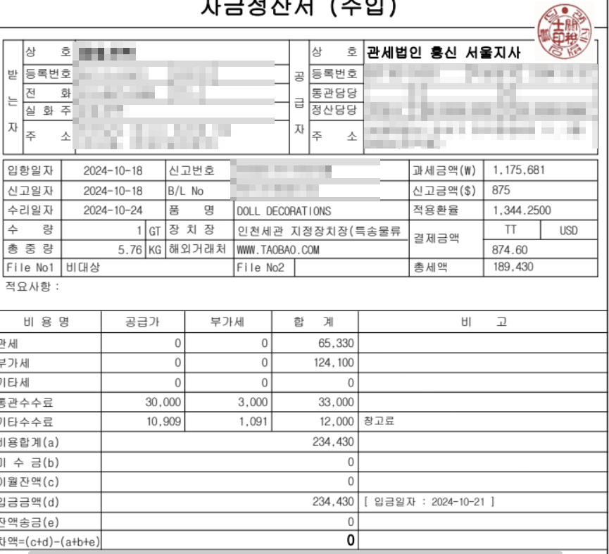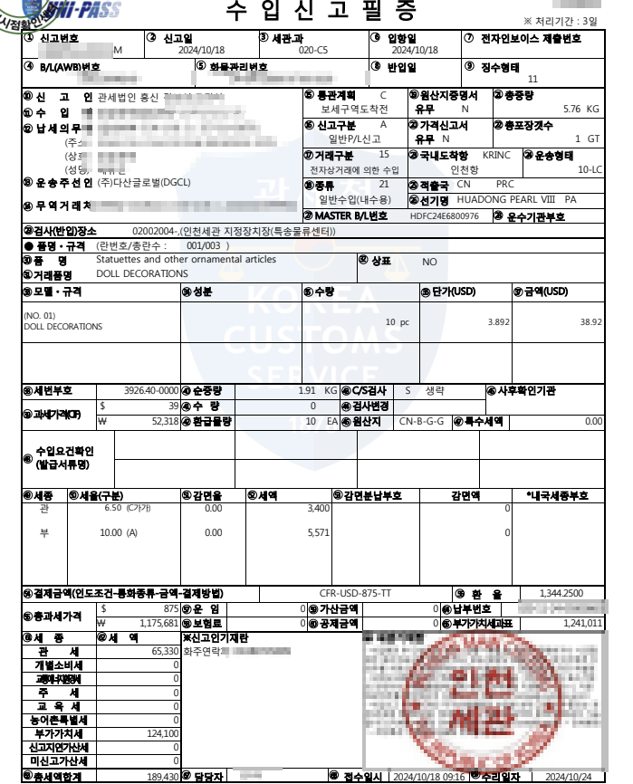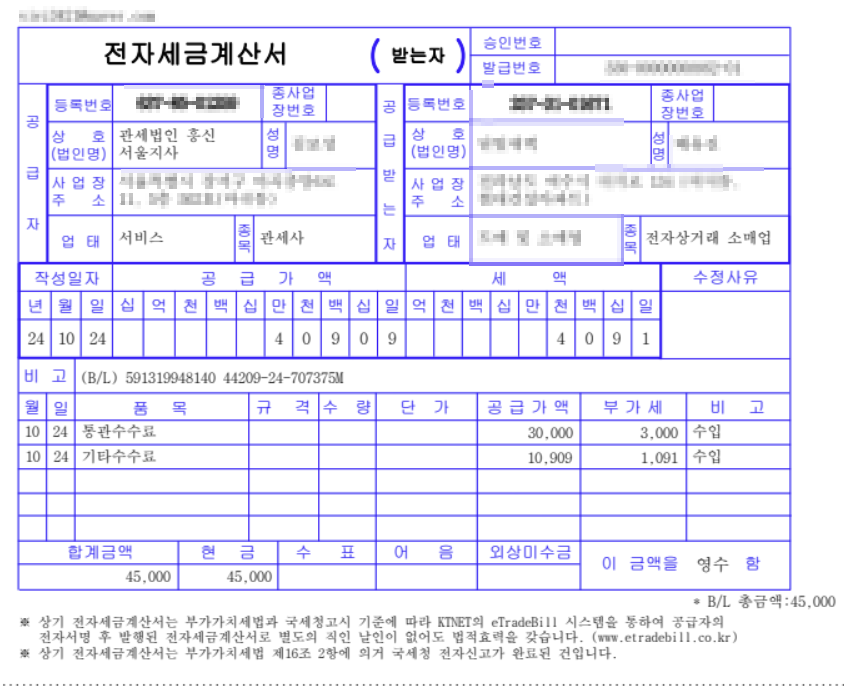 간이사업자이고 사업자통관을 통해 물건 사입했습니다