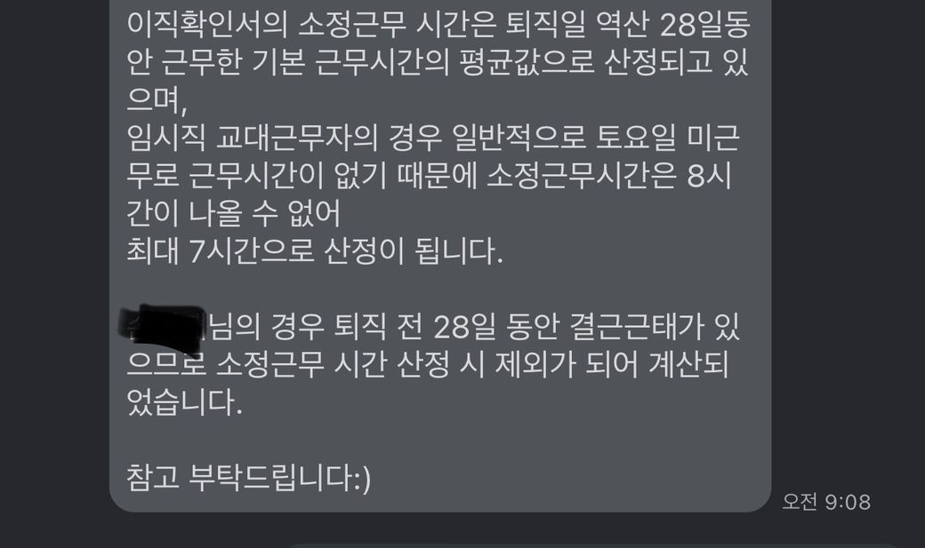 제가 근료계약서엪주40시간 하루 8시간 씩 일했습니다 근데 이직확인서를 요청하여 소정근로일수를 확인래본결과