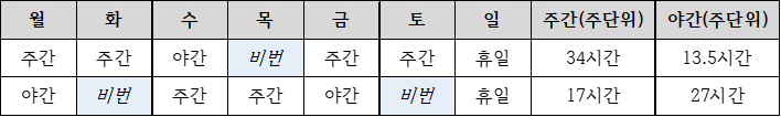 <2조 2교대 교대근무시간 패턴>