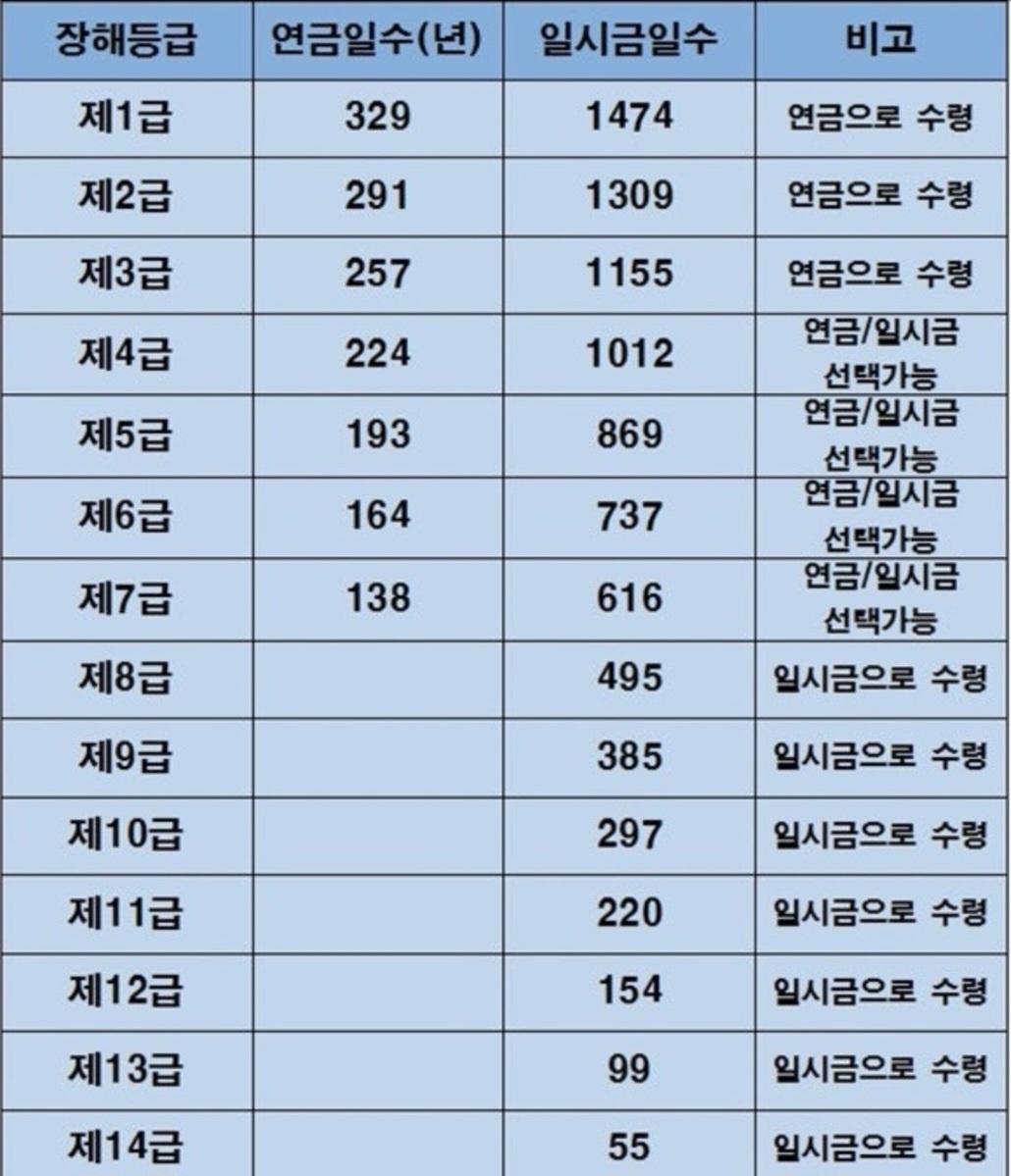 1. 장해등급에 따라 보상의 정도가 다릅니다.