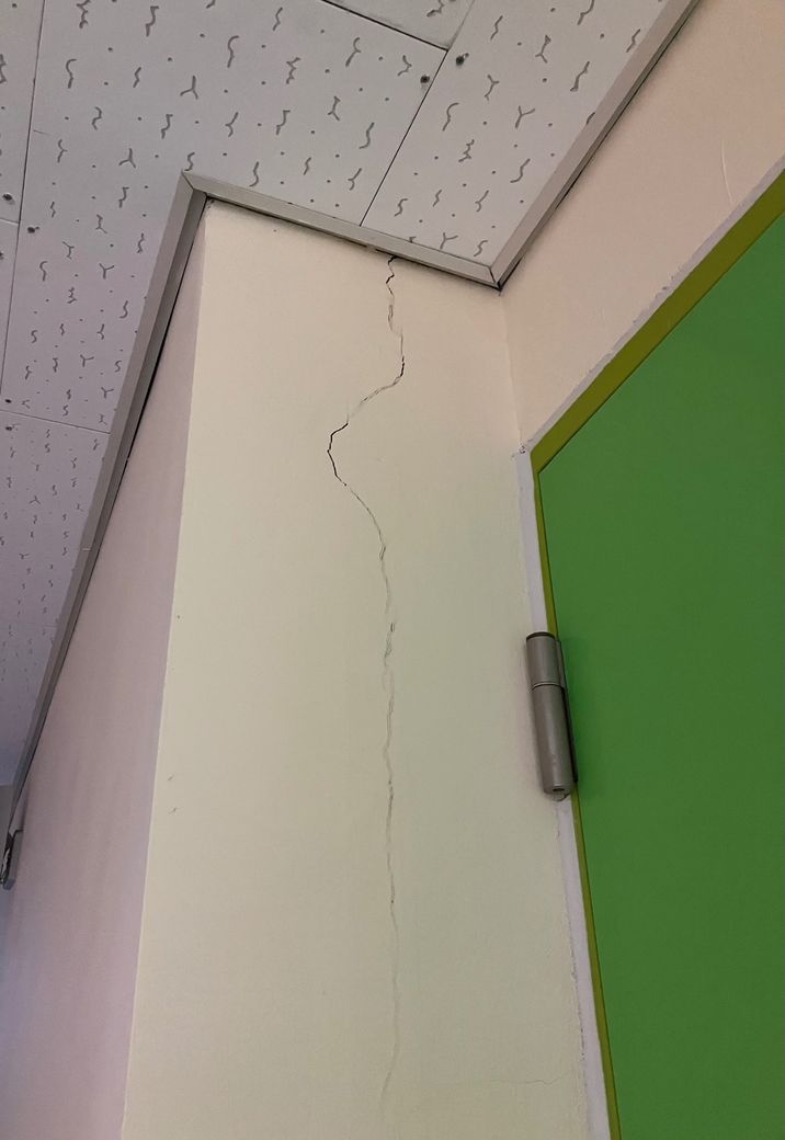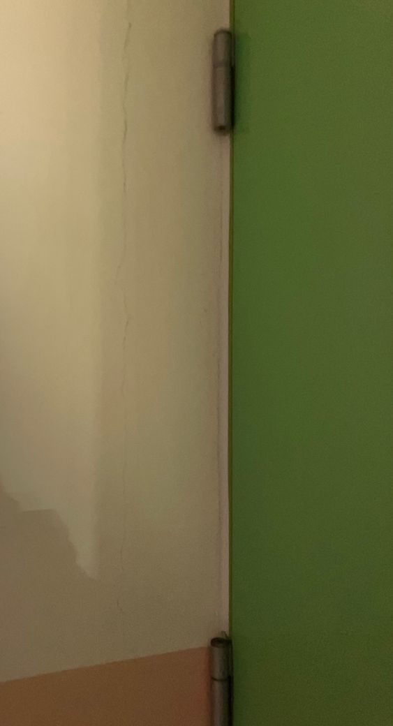 안녕하세요. 학교 기숙사 문을 여니 이렇게 바로 옆 기둥에 금이 세게 가있는데 괜찮은 건가요...?