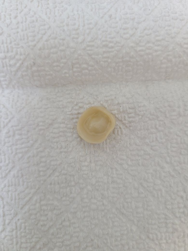 임시 치아가 빠진 것으로 보입니다. 해당 부위에 통증이나 불편감이 있다면 가까운 치과 방문 후 다시 재접착하는 것이 필요하나, 그렇지 않다면 해당 임시치아를 보관하고 20일 날 치과를 방문하여 다시 재부착하는 것도 한 방법입니다.
