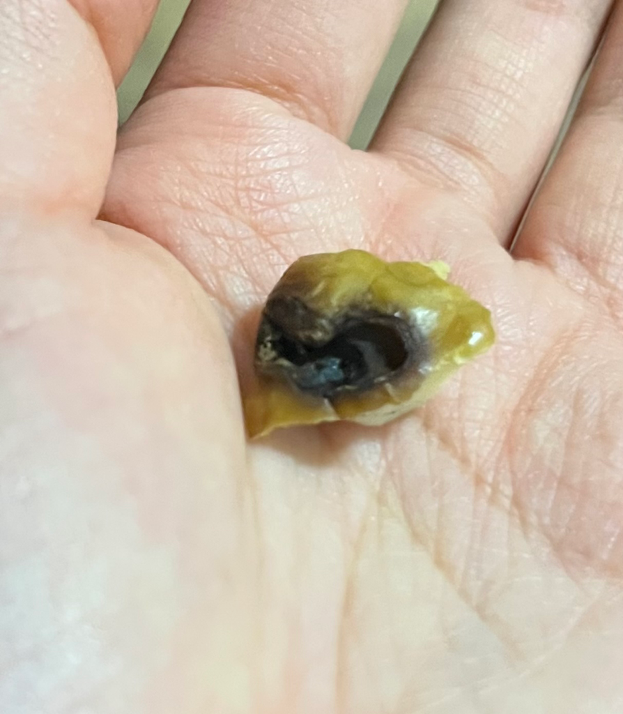 아무 생각 없이 먹다 보니까 끝부분이 저런데 저건 썩은 건가요? 아니면 탄 건가요?