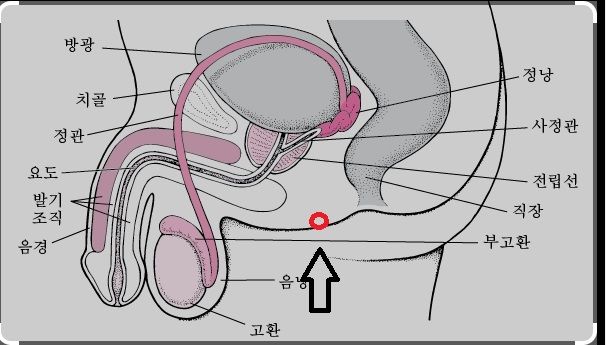 고환주머니(?) 와 항문 사이 가운데 부분에 알갱이 같은게 만져집니다