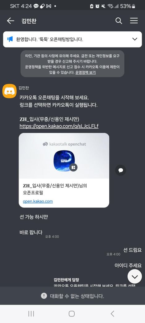 1대1 오픈 채팅방에서 사기를 당했는데 계좌 주인과 사기꾼의 명의가 달라요