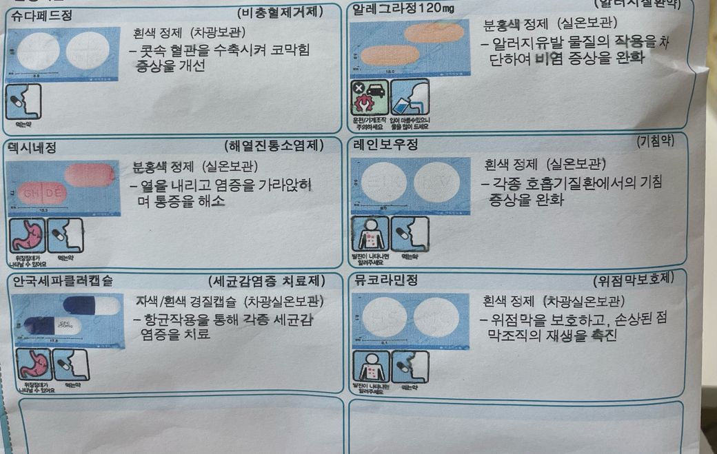 처방약은 사진으로 첨부하겠습니다. 저녁 약에는 6가지 다 들어가있어요.