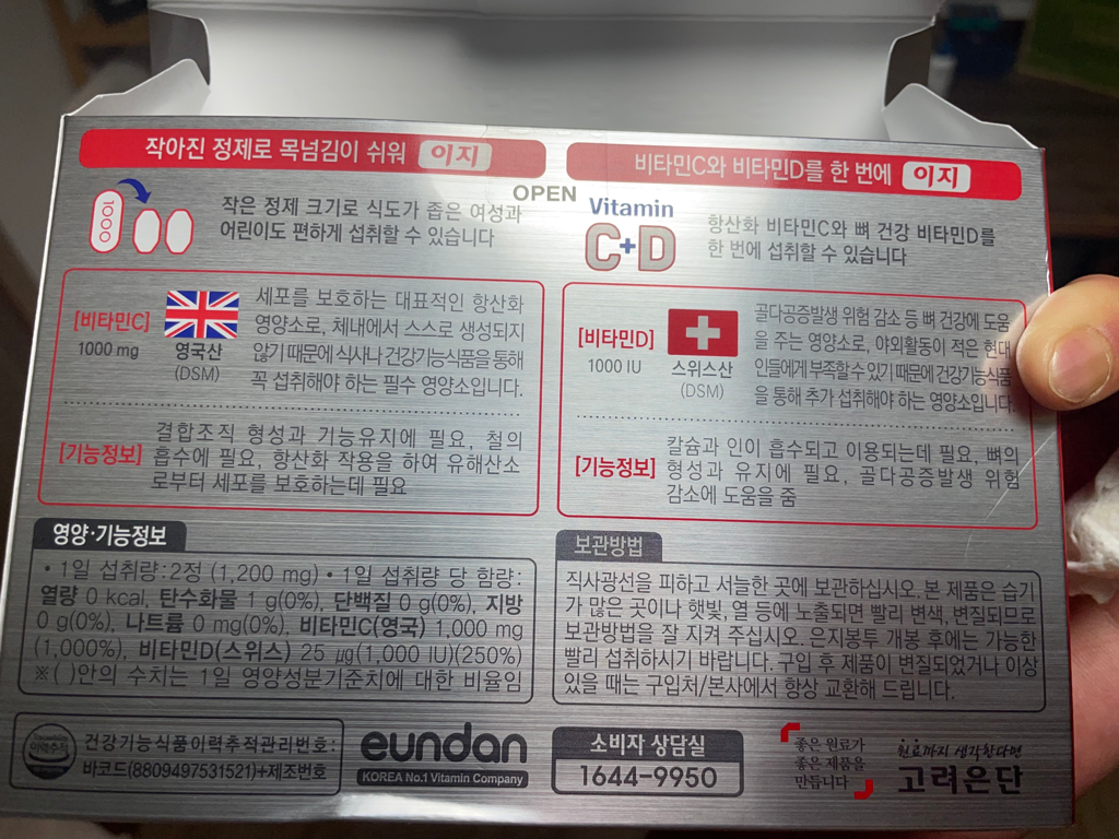 꼭 식후에 드시고 위장장애가 심하다면 비타민C, 비타민D는 점심식후에 드세요.