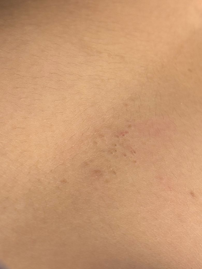 사진과 경과를 보면 아토피 자체의 전형적인 판보다는 모낭 중심의 각화(마찰·땀·보습 부족에 의해 생기는 잔잔한 구진)에 더 가깝습니다. 긁으면서 생긴 미세한 딱지와 색소침착도 일부 섞여 보입니다. 한 달간 서서히 퍼진 점, 통증이나 진물 없이 오돌토돌한 양상도 감염성보다는 염증·각화 쪽 가능성이 높습니다.