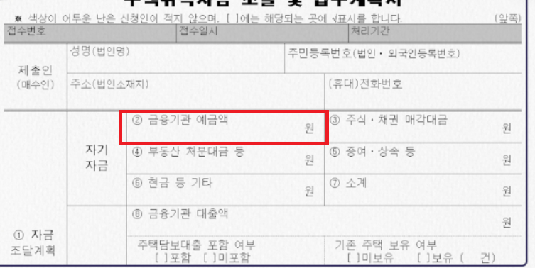 자금조달계획서를 써야하는데 예금보유액을 현금에다 써야되나요?