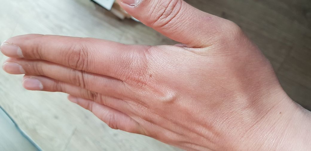 대략 20년정도 되었는데 새끼 손가락이 살짝 굽어서 쫙 펴지지가 않습니다.