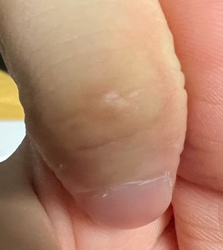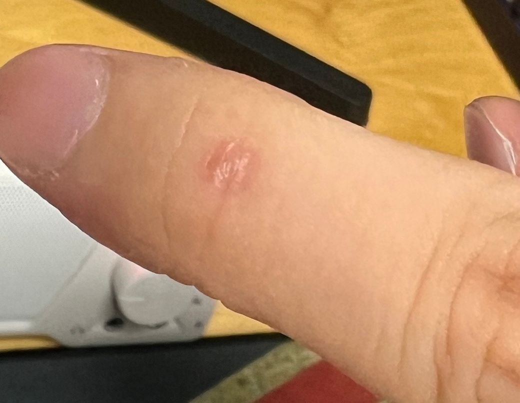 근데 냉동치료를 한 부분이 사마귀 추정부위보다 넓어서 이렇게 흉이 지고 말았습니다.