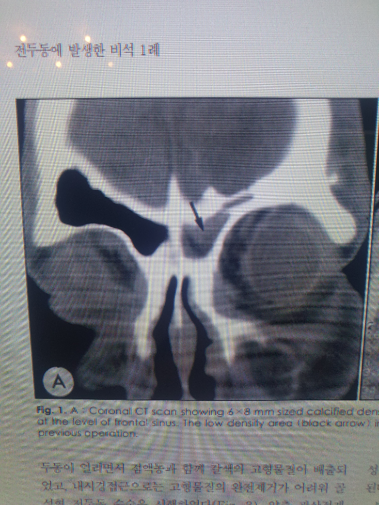 영상 설명을 보면 calcified density라는 말이 나옵니다. 이는 석회화라는 해석보다는 석회를 동반한 음영이라 해석하는 것이 알맞고, 비석 군데군데 석회를 동반했다 정도의 의미를 가진다고 이해하시면 됩니다.