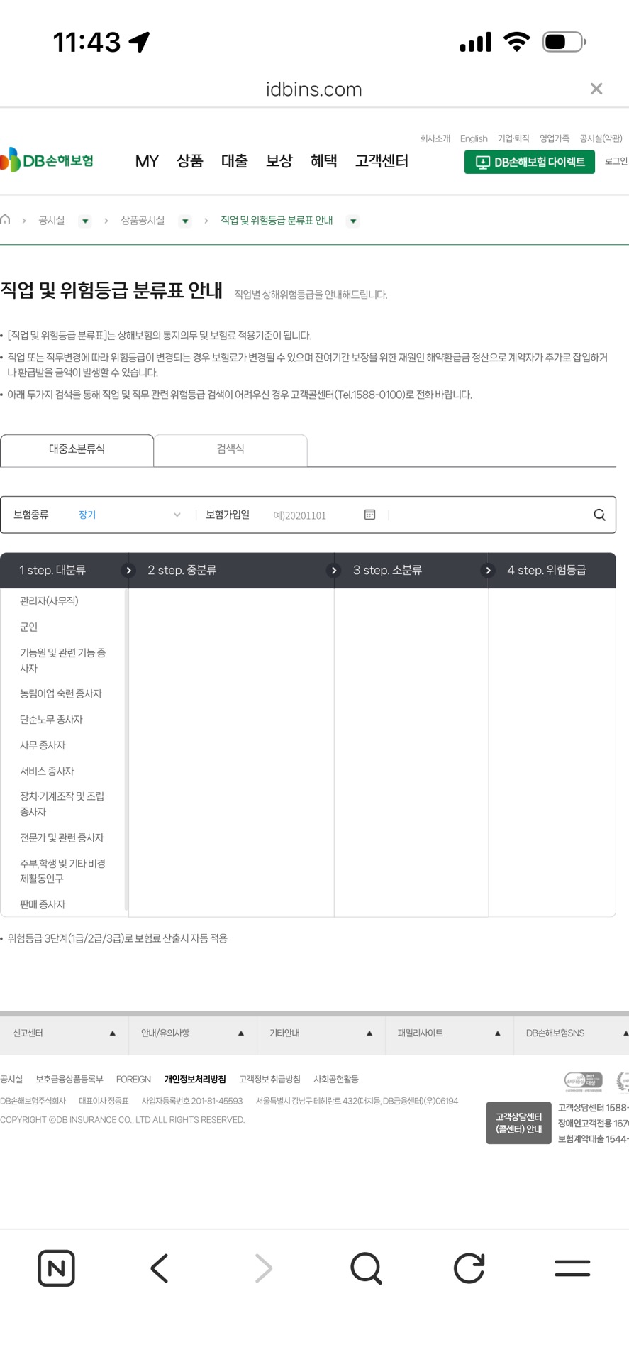 각 손해보험사 홈페이지에 직업 및 위험등급 분류표가 공개돼 있습니다. (이미지 첨부)