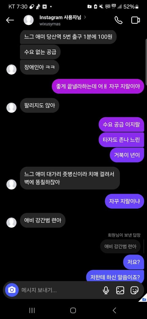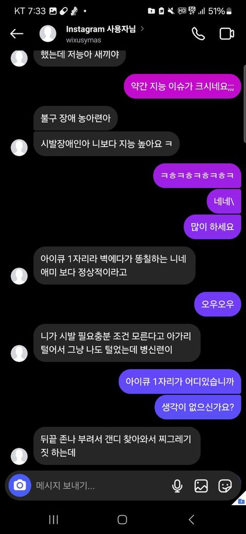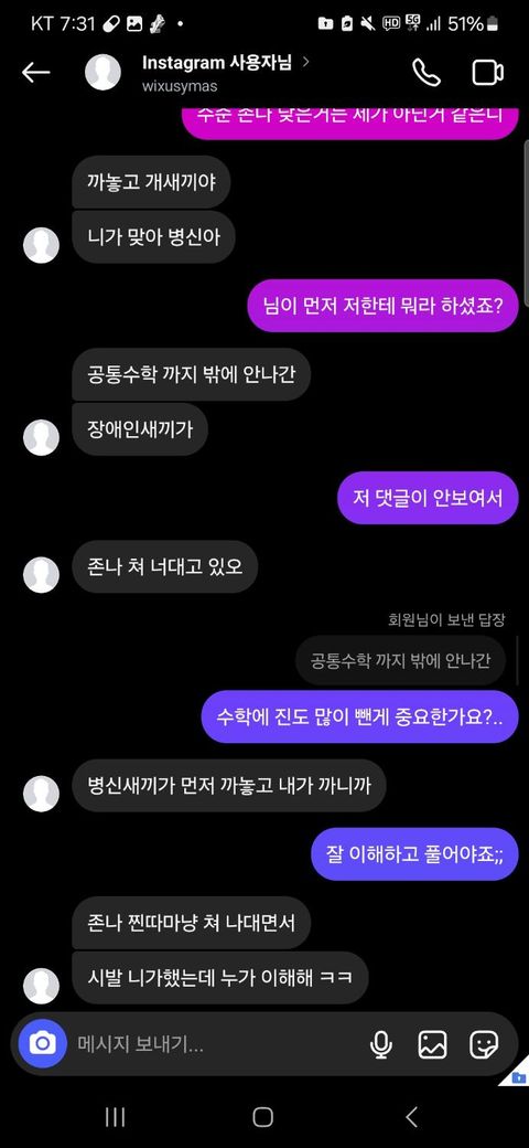 상대방이 저한테 자꾸 ( 장애인 마냥 좆같은 새끼야