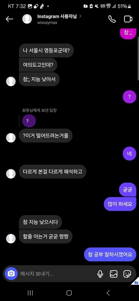 하지만 욕을 끝까지 했습니다 지역 차별도 하고 촌놈이라 하고 장애련이라고 하면서 여러가지 비하 발언을 하였습니다 계속 욕을 하길래 (가정교육 티 나네요;;)