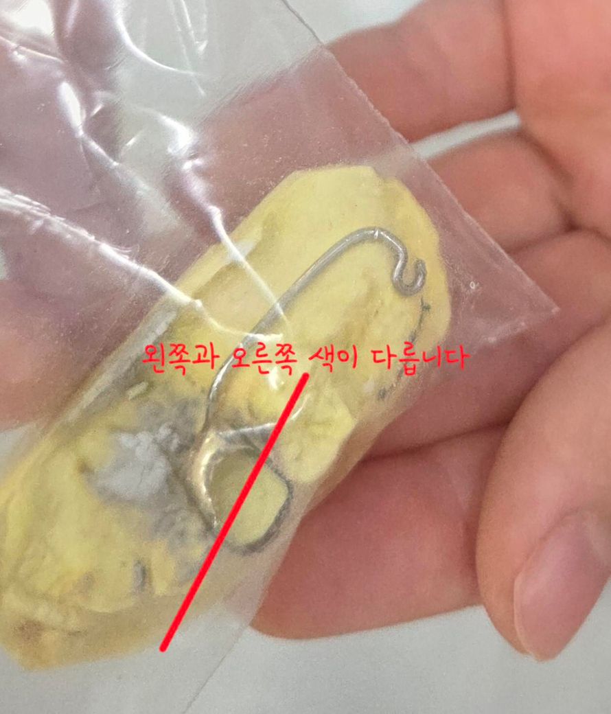치아에 끼어져 있는 겉면쪽과 안쪽면 장치색이 다른데요.